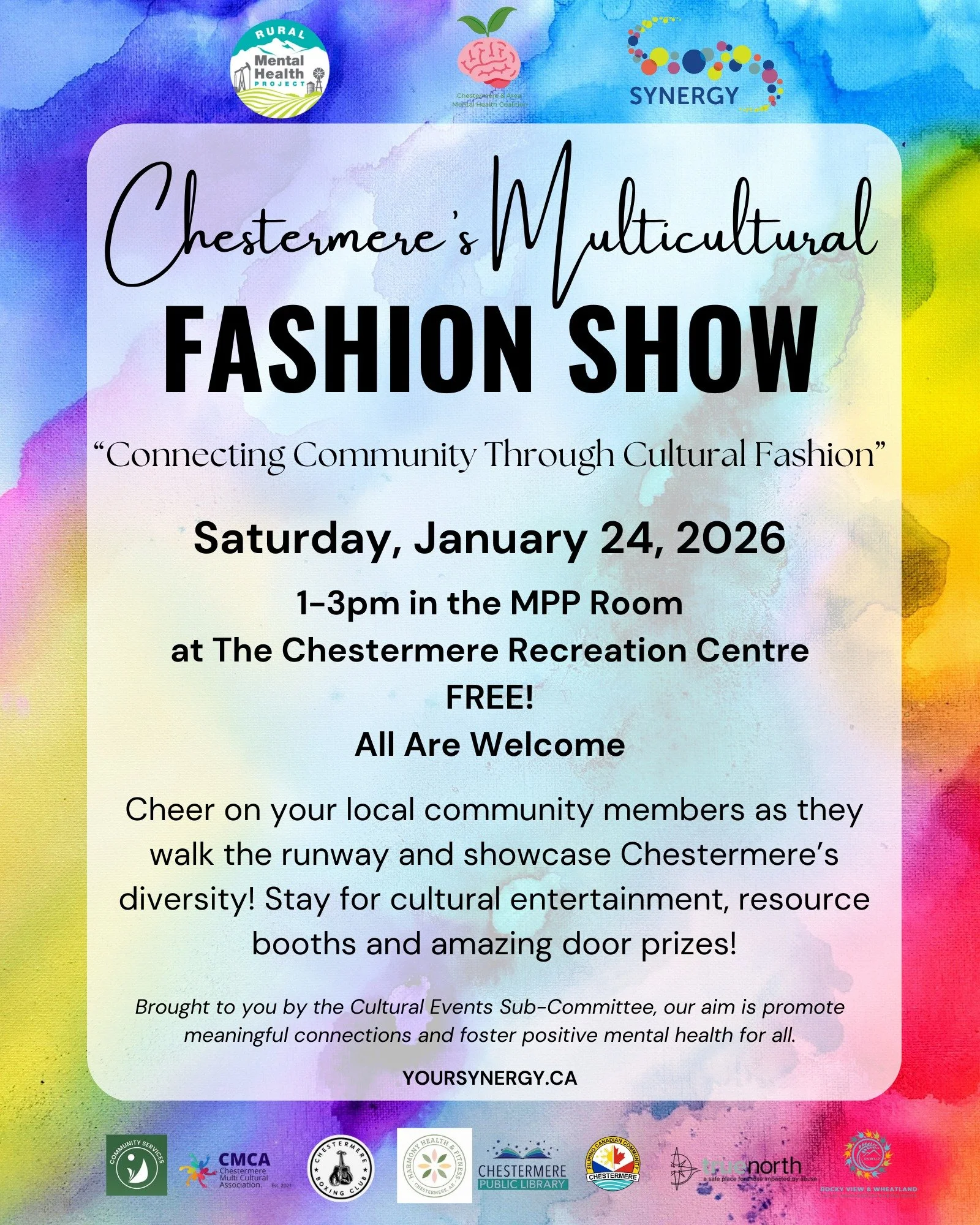 Presented by the Cultural Events Sub-Committee, this event reflects their ongoing work to build meaningful connections and support positive mental health across the community. Mark your calendar, bring a friend, and come celebrate the stories, styles, and shared spirit of Chestermere.