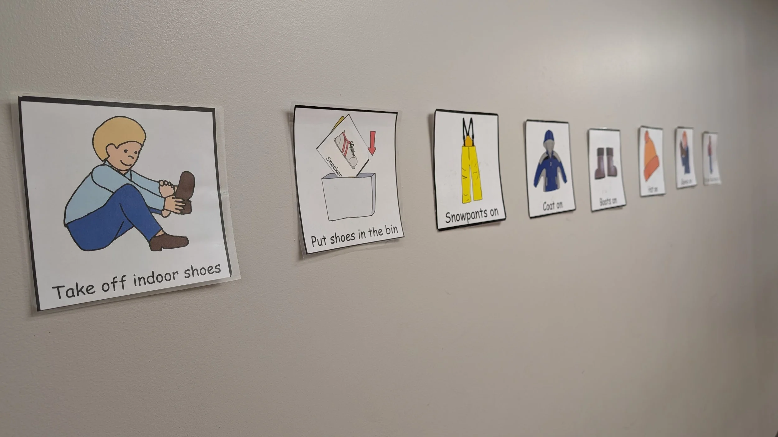 Hang up the images at your child’s eye level near where they will be getting dressed.